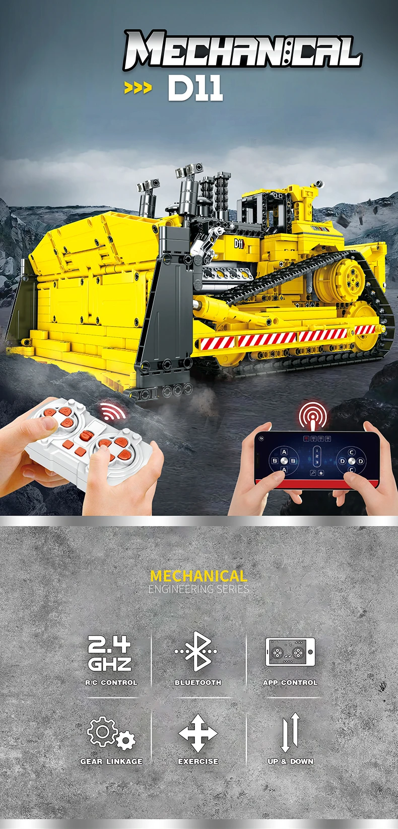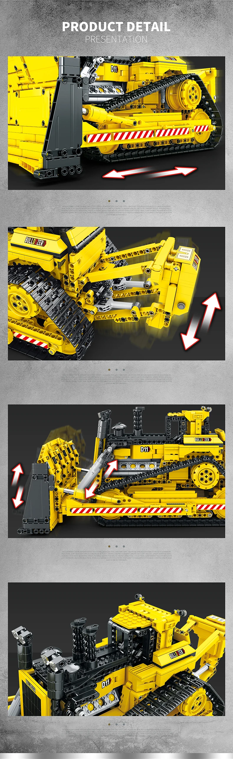 3. 360-degree Rotation: The bulldozer has the ability to turn in place, making it easier to navigate tight spaces and corners.