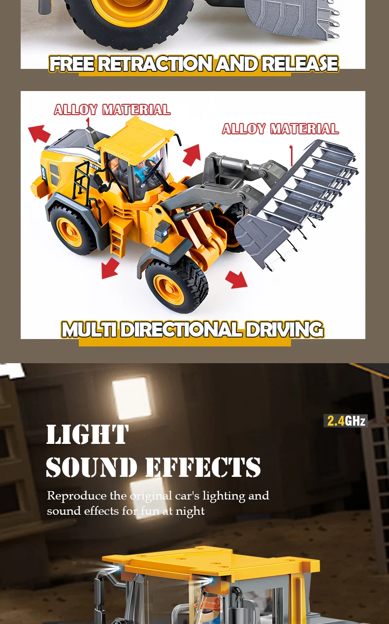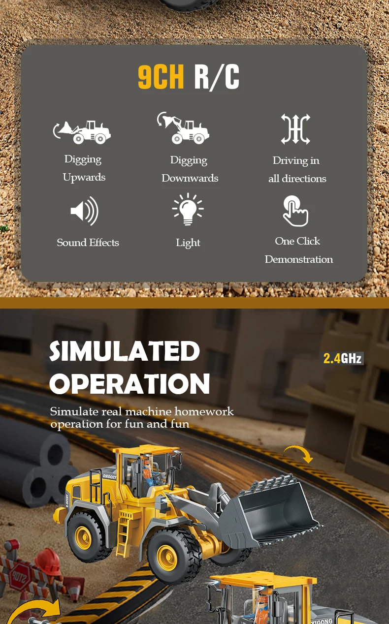 2.4G Remote Controlled Bulldozer Nine Channel Loading Vehicle Simulation Excavation Engineering Gifts for 6+ Children
