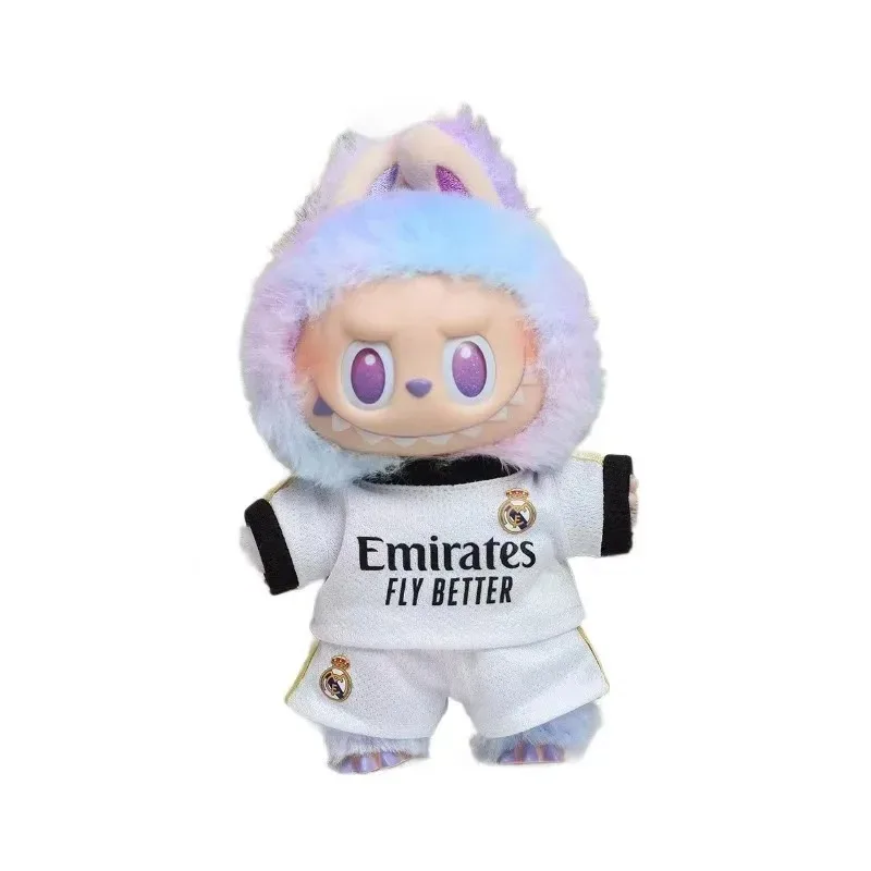 Dress up your 17cm Labubu-style doll in this adorable football uniform set.